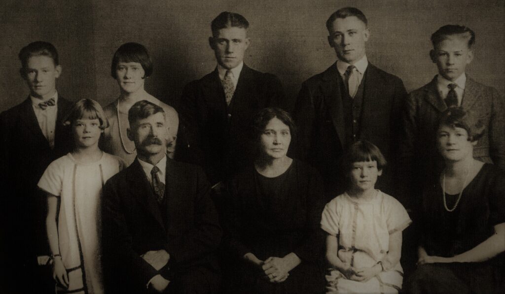 Aftari röð: Nýmundur, Ema, Hans, Björn og Paul. Fremri röð: Þóra (Thora) Eggert, Sigríður, Pauline og Herdís. Mynd RbQ