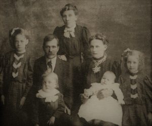 Fremst: Kristján og Halldór, miðja: Guðný, Guðmundur, Jónína og Lauga. Guðrún Jónatansdóttir aftast. Mynd WtW