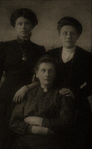 Hallbjörg situr en Halldóra (hærri) og vinkona hennar, Gerða Thordarson standa. Mynd WtW