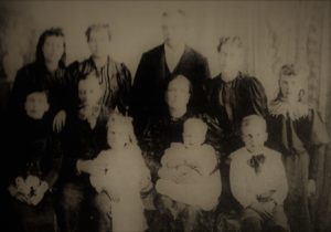 Fremri röð: Anna, Jón með Þórarinn, Guðlaug með Kristján, Eiríkur. Aftari röð: Ólöf Ingibjörg, Guðlaug, Halldór, Þórunn, Eirikka. Mynd: IRS