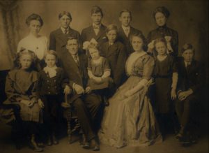 Standing: Ólafía, Reimar, Ingimundur, Jón and Sesselja. In front: Sigurrós, Falur, Jón, Lovísa, Guðmundur, Guðríður, Kristín and Þórður. Photo: Private collection.