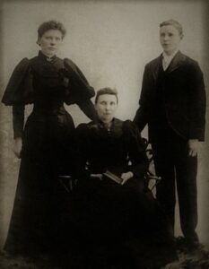 María Elísabet Kristjánsdóttir og börn hennar Helga og Bjarni. Mynd Laugardalsætt