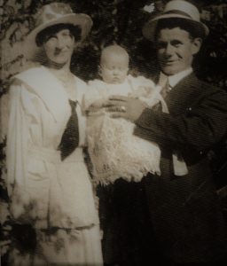 Þorsteinn Ingimundarson og Helga Magnúsdóttir. Þorsteinn heldur á syni þeirra, Magnúsi. Mynd Hnausa Reflections