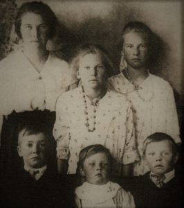 Six children who lived: Front Eggert Vigfús, Guðmundur Steinn, and Jóhann. In back: Kristjana, Kristín and Laufey Photo: WtW