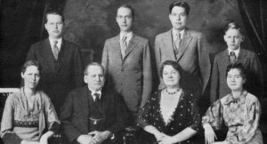 Top row: Kristjan Valdimar, Gunnar Bjorn, Edvard Hjalmar, Jon Henrik. Sitting: Helga Sigridur, Gunnar, Ingibjörg and Stefania