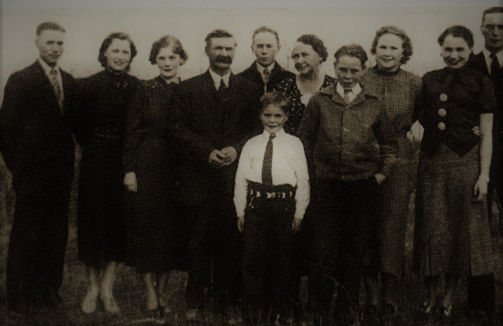 From left:: Skúli, Kristín, Lára, Hannes, Karl, Margrét, Louisa, Sigríður and William. In front of Margrét and Louisa are Earle and Hannes in the white shirt. Photo: RbQ