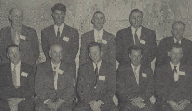 Standandi frá vinstri: Glen Burrow, Winnipegosis, Jim Clearwater, Langruth, Einar Nordal, Lundar, Óli Einarson, Flin Flon, Alec Jónasson, Wabowden. Sitjandi frá vinstri: John Gunnlaugsson, Narrows, Pete Billenduke, Winnipegosis, Paul Olson, Gimli, Dempsey Valgardson, Gimli, Helgi Tómasson, Mikley.